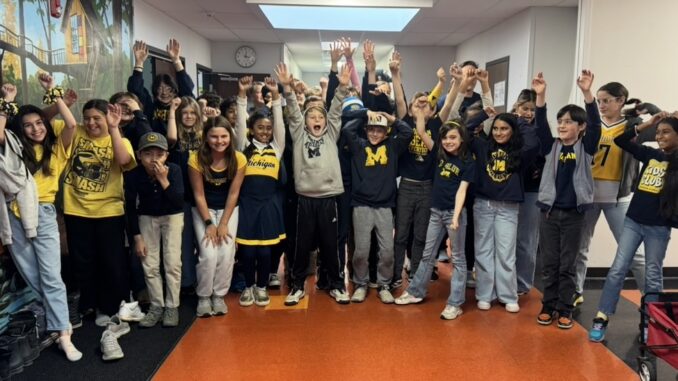 The dress code at Ann Arbor Public Schools today? Bright maize & Go Blue! Looking forward to a solid victory tonight for @umichbball!
