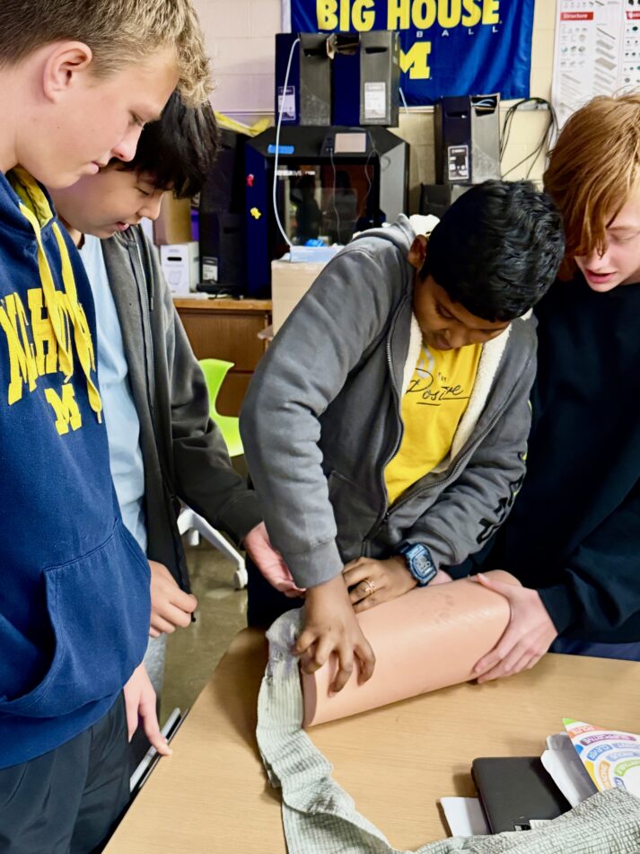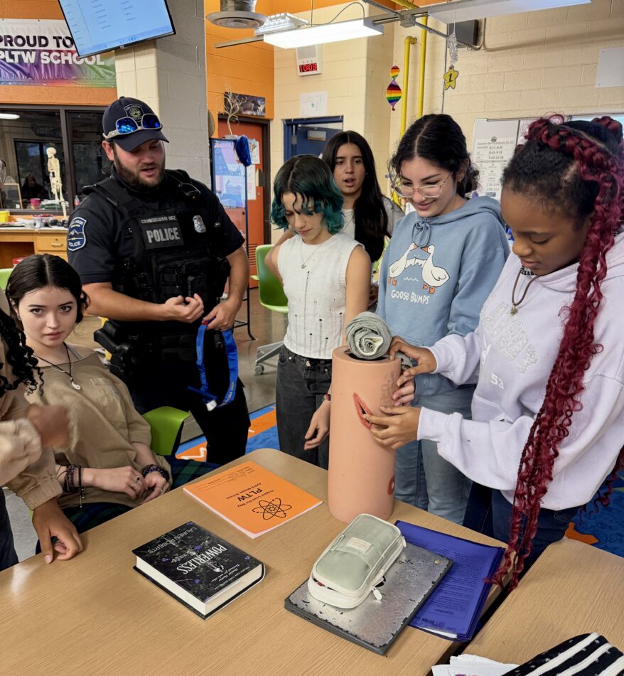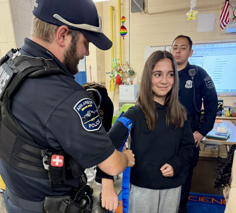 Officers from the Ann Arbor Police Department visited Slauson Middle School last week to conduct a Stop the Bleed presentation with 8th Grade Medical Detectives students.