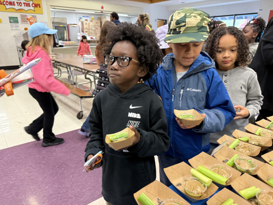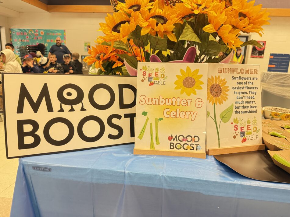 Chartwells AAPS brought a burst of sunshine to lunch at Carpenter Elementary on Thursday with a special Mood Boost and Seed to Table event. Students enjoyed tasty samples of sunflower seeds and sunbutter with celery sticks, and learned how food can impact both their mood and health.