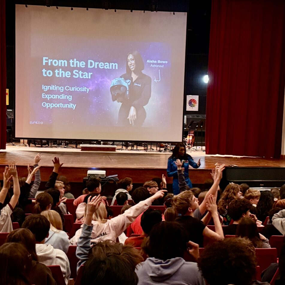 Students didn’t just listen—they engaged. They asked about her experience in middle school, and about what it feels like to float in space. Bowe answered candidly, even sharing her own fears while describing the vast blackness of space. But she also spoke about growth, confidence, and choosing to move forward anyway.