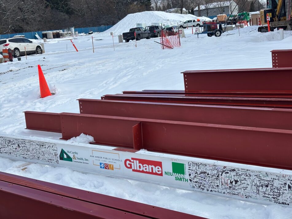 The AAPS Capital Program celebrated a milestone on Tuesday as the highest beam was placed on the under-construction Mitchell Elementary. This time-honored Topping Out Ceremony celebrates the work of our construction team, marks significant progress, and is believed to bring good luck to Mitchell Elementary and all its future students and staff.