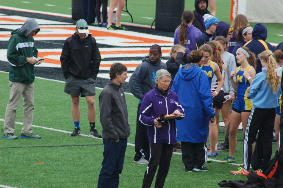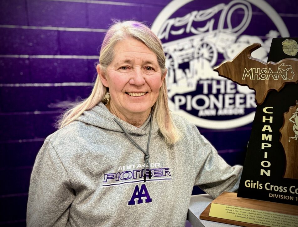 After I got married and moved to Ann Arbor, I volunteered to help coach the Tappan Middle School track teams while my daughters attended Tappan from 2004 to 2009. After my older daughter graduated from Pioneer, I became the assistant girls’ cross country and track coach at Pioneer. When Coach Westfield passed away in the summer of 2015, I became the girls’ head coach of both cross country and track. I just love coaching the girls and watching them grow into better runners and wonderful young women.