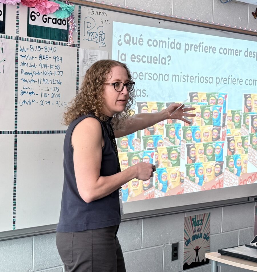 Her class includes activities designed to make Spanish a living part of students’ lives. Her students read stories, learn about musicians, complete music brackets, and even watch shows, all in the target language.