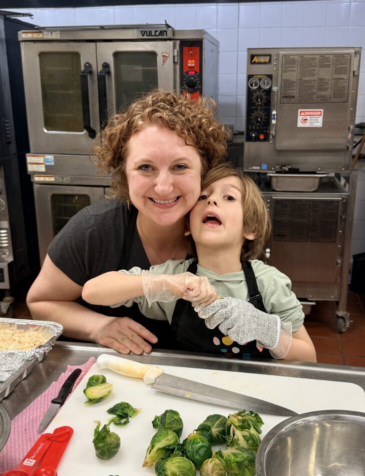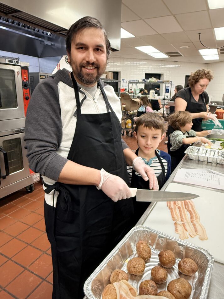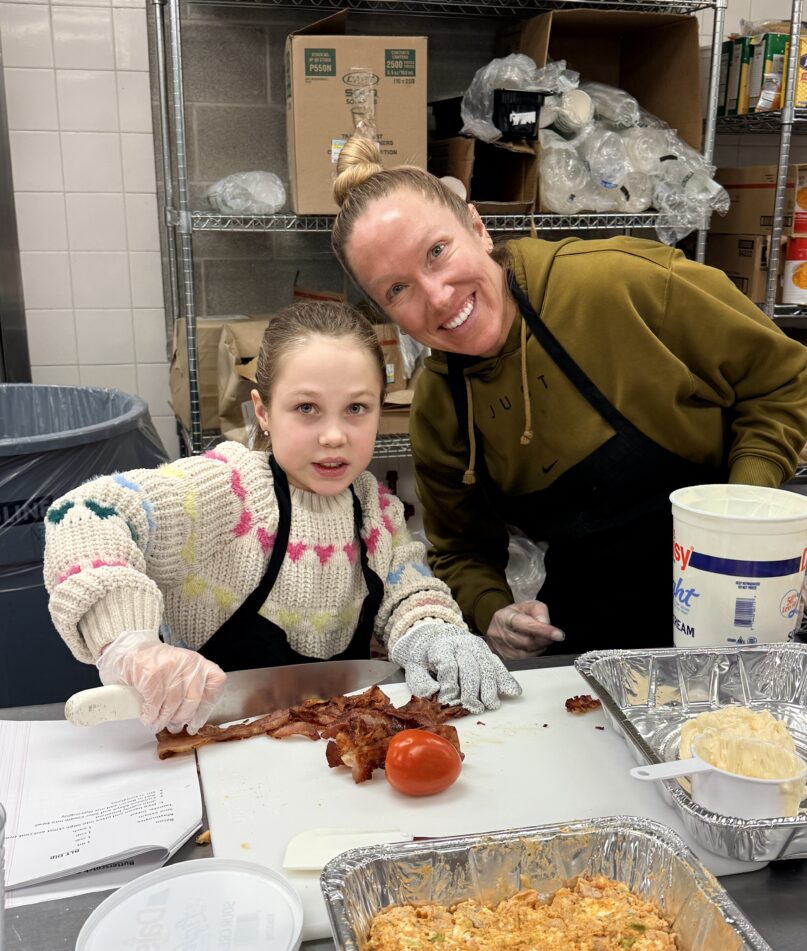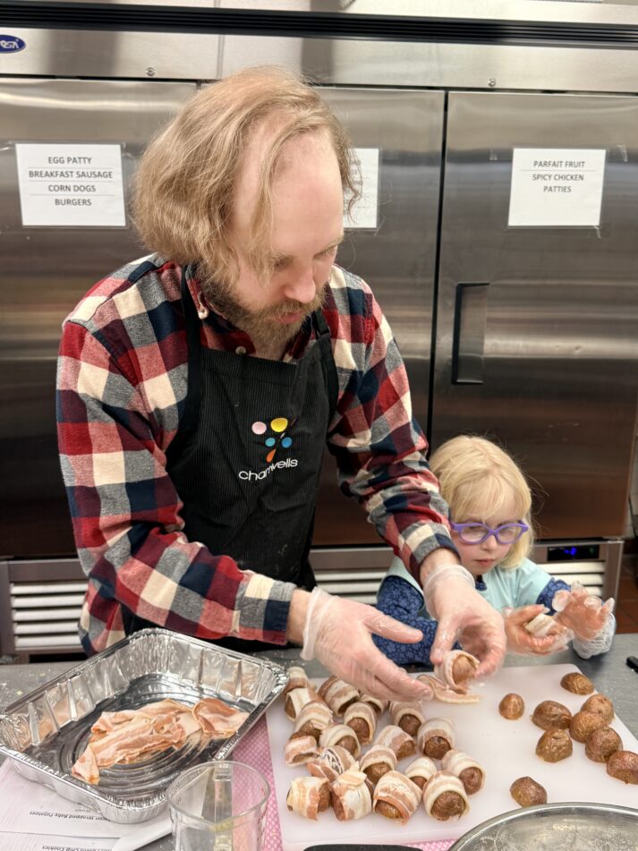 Ann Arbor Rec & Ed‘s new “Adult/Child Cooking: Touchdown Treats” class was a huge success last night as families teamed up in the Pioneer High School kitchen to create the ultimate Super Bowl spread: Butterscotch Potato Chip Cookies, Smoky Bacon-Wrapped Baby Potatoes, and a BLT Dip.